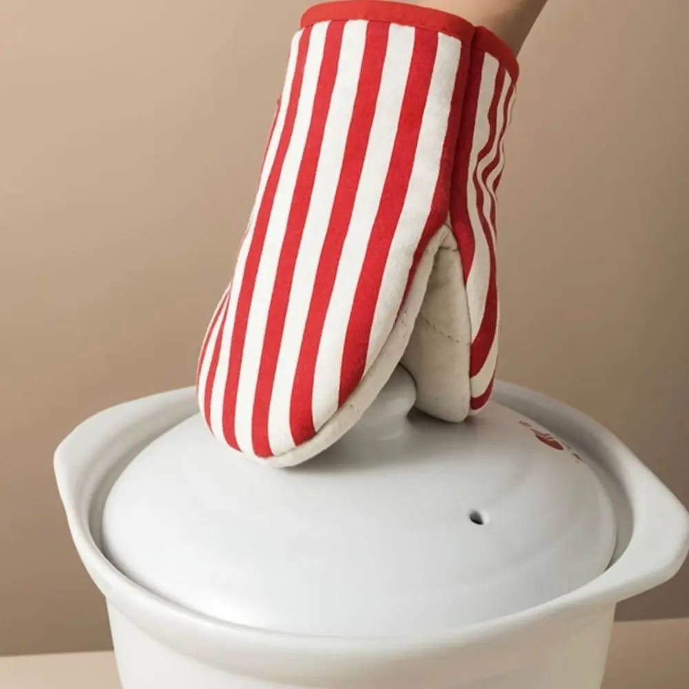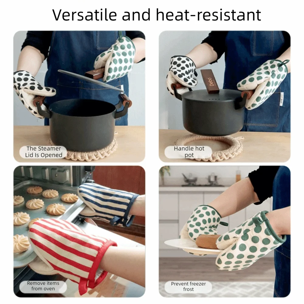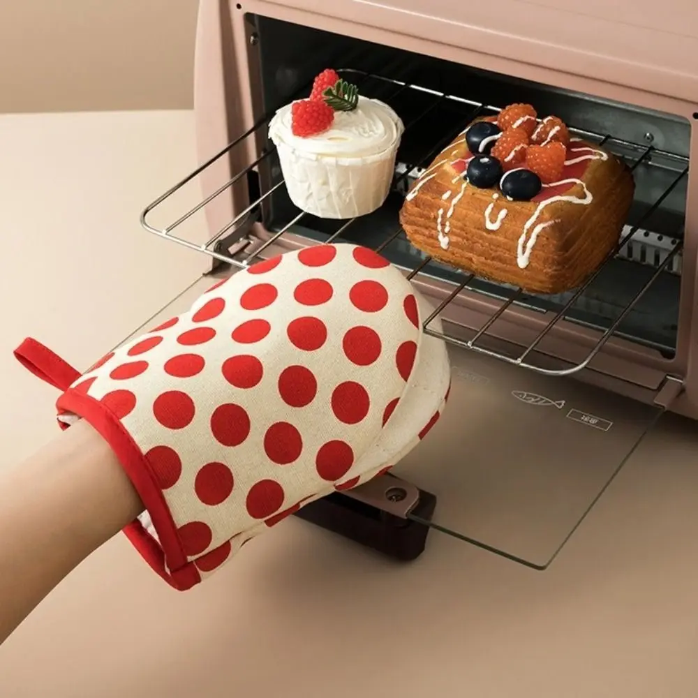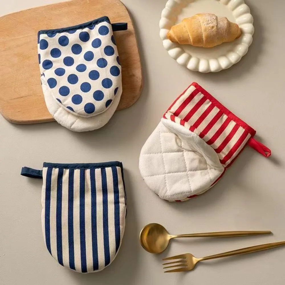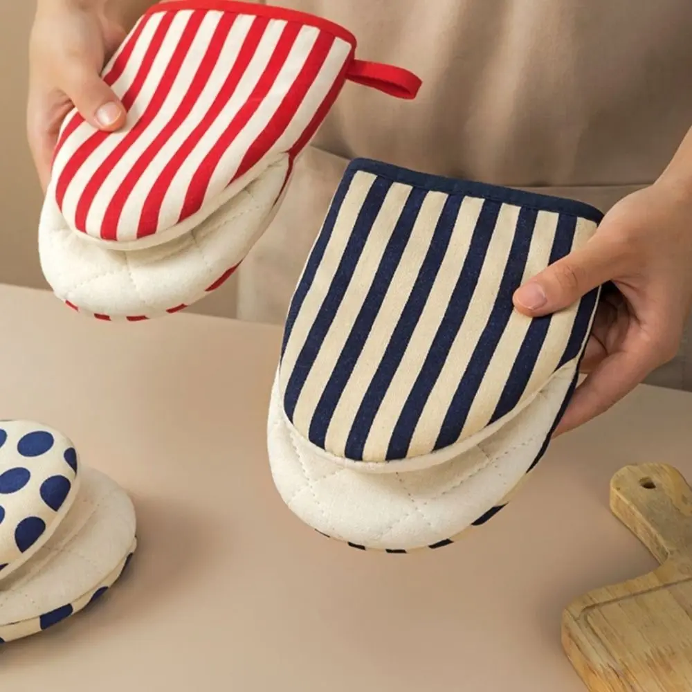 2pcs/set Polka Dot Heat-Resistant Oven Mitts Stripe Anti-Scald Microwave Safe Gloves Comfortable Grip Hanging Loops
