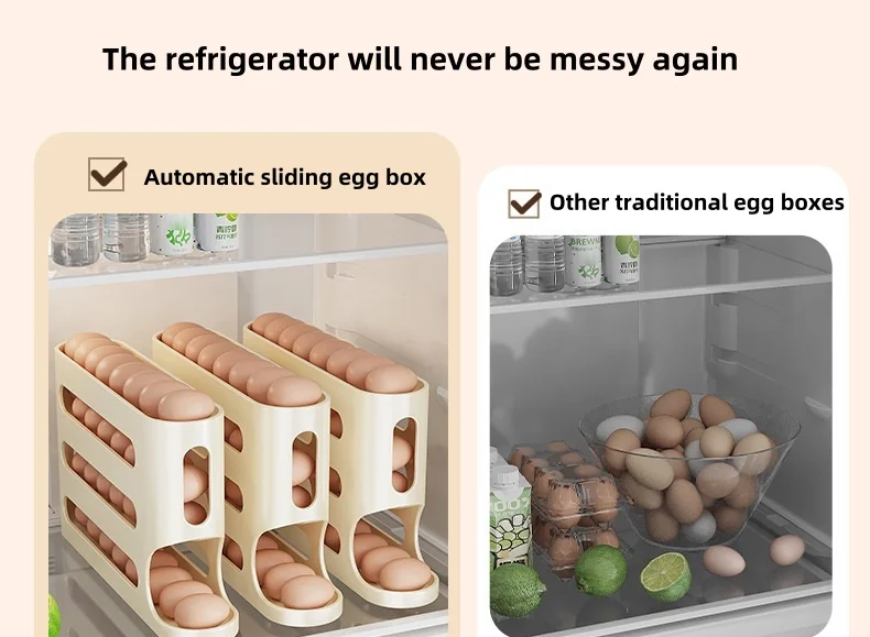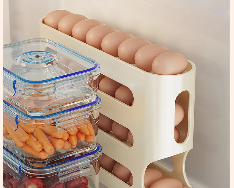 - Feature 6: 4 tier egg holder for fridge,refrigerator egg dispenser