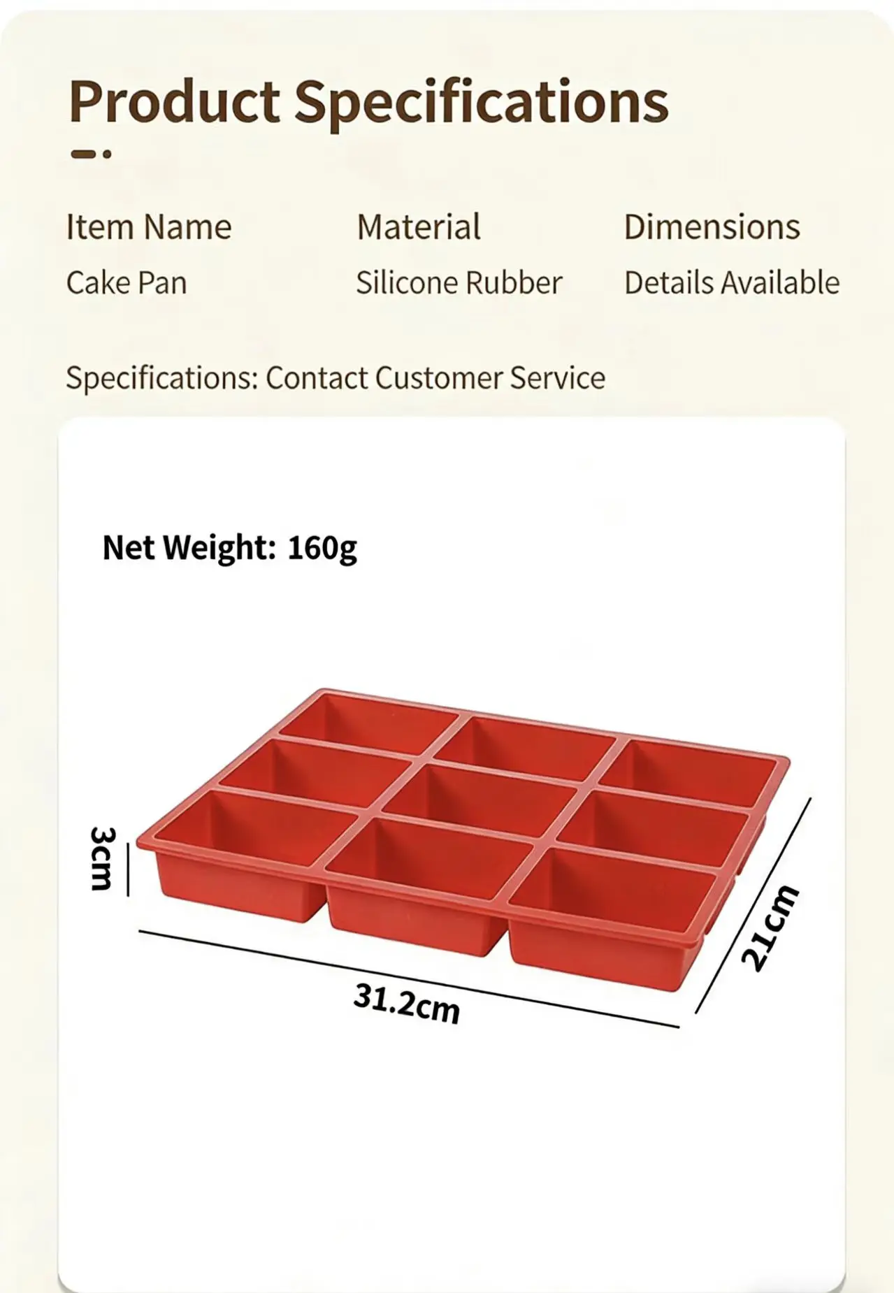More Functional Advantages1. Easy to StoreThe flexible design allows you to roll or fold the silicone pan, making it incredibly easy to store in kitchen drawers or cabinets without taking up much space.2. Ideal for Baking GiftsPerfect for creating homemade baked goods to share with friends and family, this pan makes it easy to whip up treats that can be packaged as thoughtful gifts.3. Supports Healthy Baking OptionsEncourages the use of alternative ingredients and healthier recipes, enabling you to experiment with gluten-free, low-sugar, or organic ingredients easily.4. No Chemical CoatingsUnlike metal pans that may have non-stick coatings that wear off, our silicone pan is made entirely of pure silicone, free from chemicals that may compromise your health.5. High Versatility in Recipe UseWhether you're making quick breads, cakes, or gelatin desserts, this pan accommodates a wide range of recipes, adding value to your baking toolkit.6. Transparent Design OptionsSome models come with transparent or semi-transparent finishes, allowing you to monitor the baking process without having to open the oven.7. Light Reflection PropertiesThe silicone reflects light, reducing the overall heat absorbed during baking, thus providing more consistent results and preventing overbrowning.8. Child-Safe MaterialsSpecially designed with safety in mind, the silicone material is soft with rounded edges, making it safer for children to handle during baking activities.9. Quick-Release MechanismThanks to the flexibility of silicone, baked goods can be released swiftly with just a gentle push, speeding up your baking and cleanup process.10. Backed by ResearchOur pan design has been supported by research into optimal baking materials, ensuring that it performs at the highest standards for even the most discerning bakers.Reasons to Choose This Product1. Well-Researched DesignOur mini loaf pan design has been optimized based on input from experienced bakers, ensuring it meets the needs of both home and professional users.2. Affordability Without CompromiseOffering quality and versatility, our silicone pan is competitively priced, providing an excellent option for budget-conscious bakers who don’t want to sacrifice performance.3. Trusted Brand ReputationWe have established a reputation for high-quality kitchen tools, giving you confidence that you’re purchasing from a reliable and reputable source.4. Free Recipe GuideEach purchase comes with a free recipe guide featuring unique ideas for using your mini loaf pan, sparking creativity in the kitchen.5. Exceptional Product ReviewsOur product is backed by numerous positive reviews from satisfied customers, affirming its effectiveness, ease of use, and overall value.6. Designed for Quick RecoveryThe flexible silicone material helps return to shape after use, ensuring that it looks and performs like new after countless baking sessions.7. Supports Local IndustriesWhen you buy our product, you support local manufacturing, contributing to economic growth and sustainability in your community.8. Easy Labeling for OrganizationYou can label the pan with recipes or ingredients, aiding in quick identification during meal prep, which is particularly helpful for batch cooking.9. Encourages Creativity in PresentationWith the flexibility and non-stick nature, you can easily experiment with decorative toppings or glazes that won’t stick to the pan, enhancing your presentation skills.10. Satisfaction GuaranteedWe stand behind our product with a satisfaction guarantee, allowing you to purchase with confidence, knowing we are committed to your happiness with our item.These additional features and reasons further highlight the usability, practicality, and appeal of our 9-Cavity Silicone Mini Loaf Pan, making it an essential tool for both novice and experienced bakers alike.