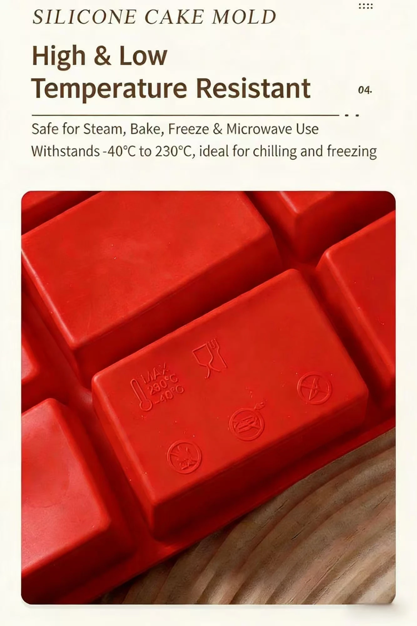 The excellent release rate of our silicone material allows for less crumbling of baked goods, preserving their aesthetic appeal and taste.