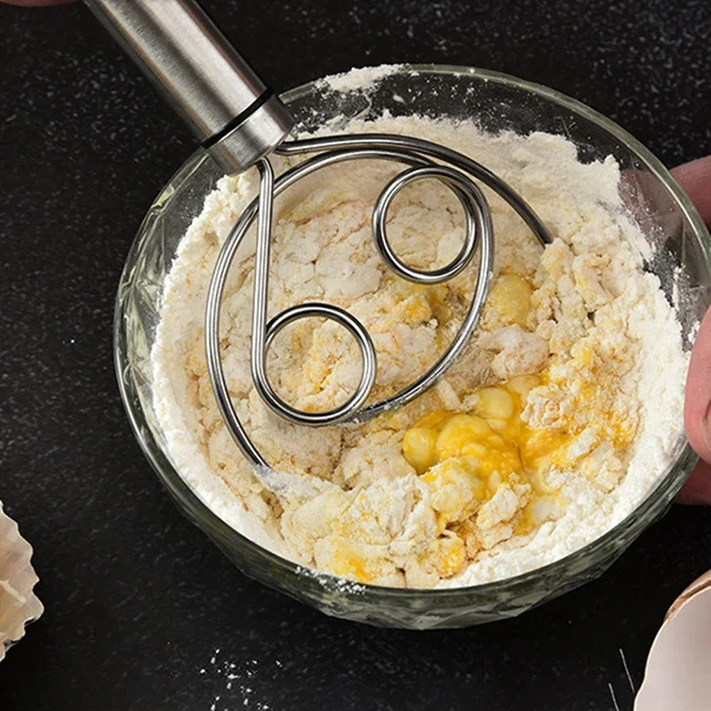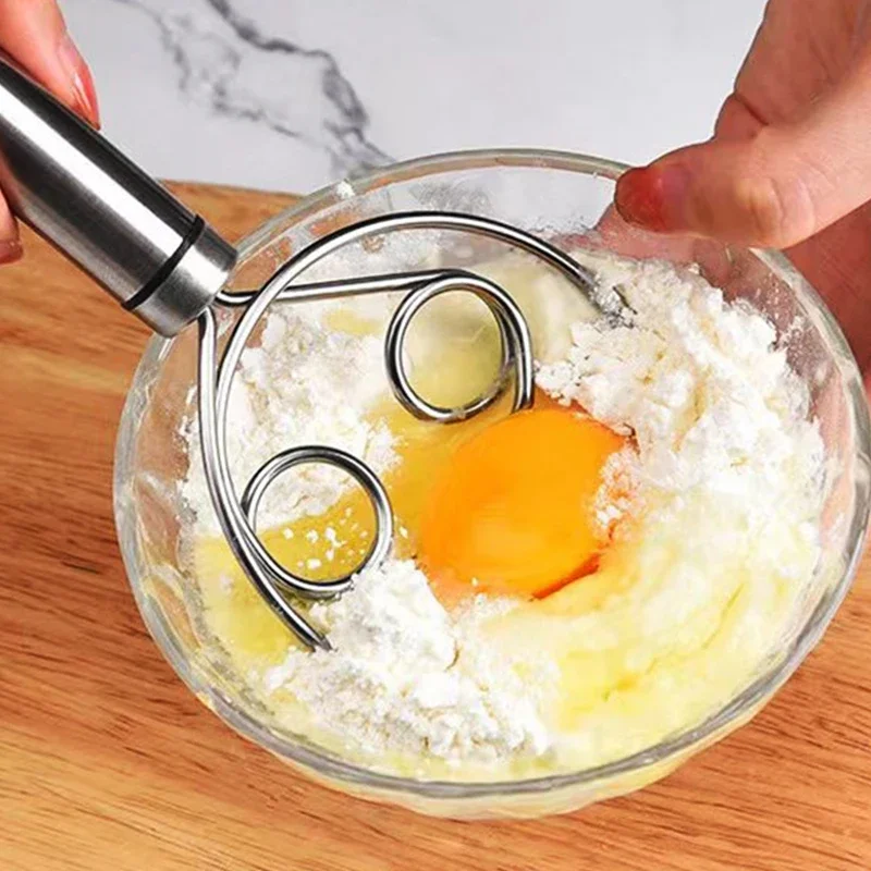 Danish Dough Bread Whisk Stainless Steel Handle Kitchen Baking Tools Pastry Manual Mixer Egg Beater Self Turning Cream Utensils
