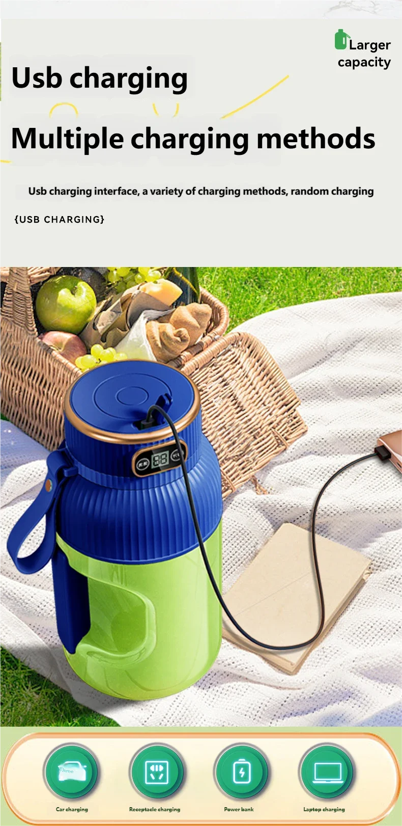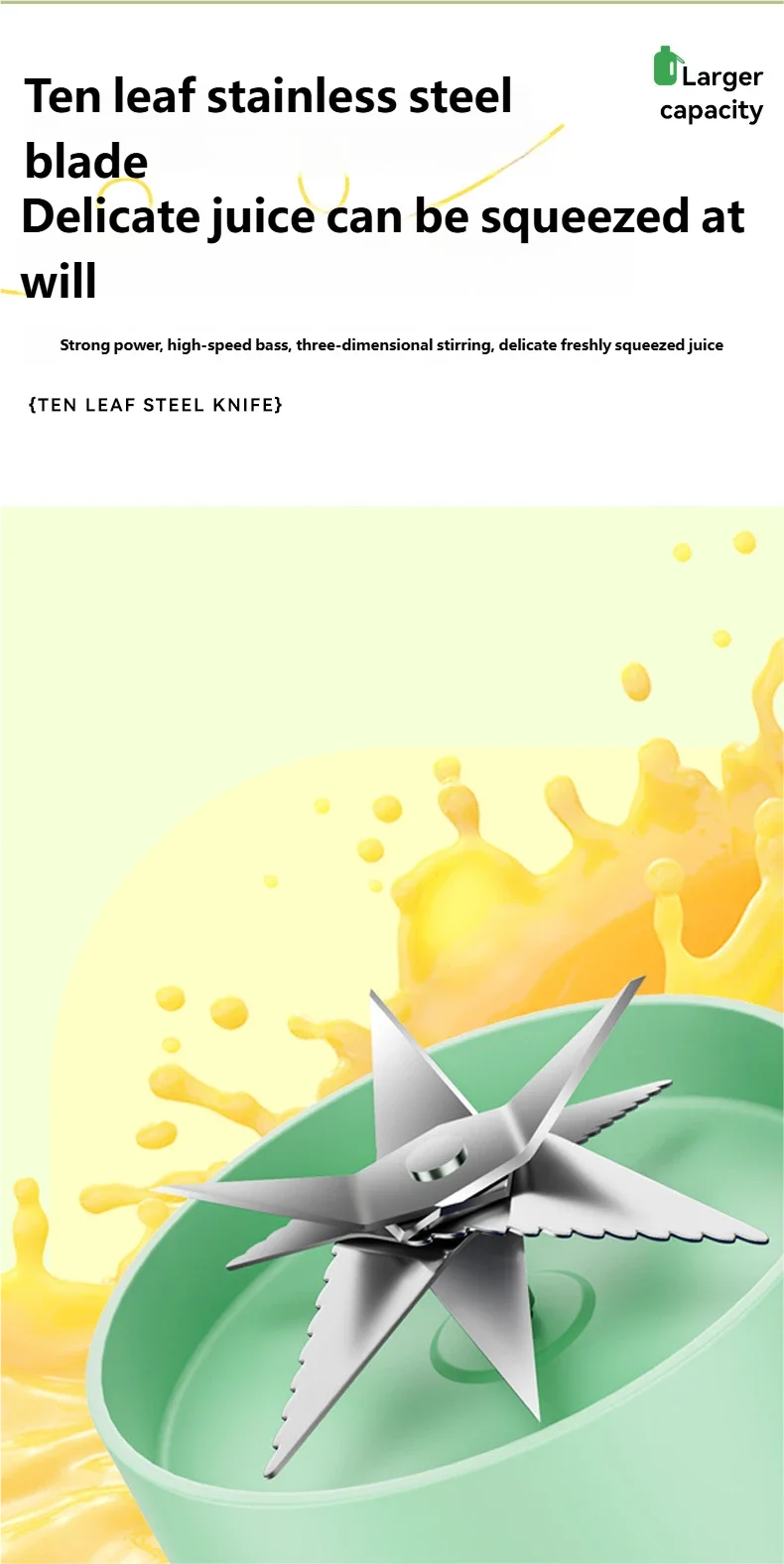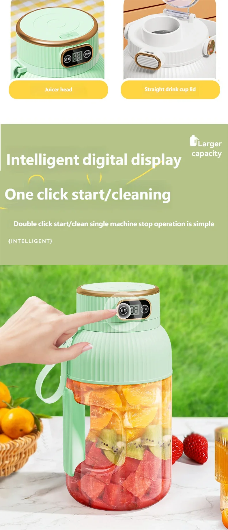 POWERFUL JUICER: Equipped with a 4-blade system and a powerful motor, this juicing bottle efficiently extracts juices from fruits and vegetables.