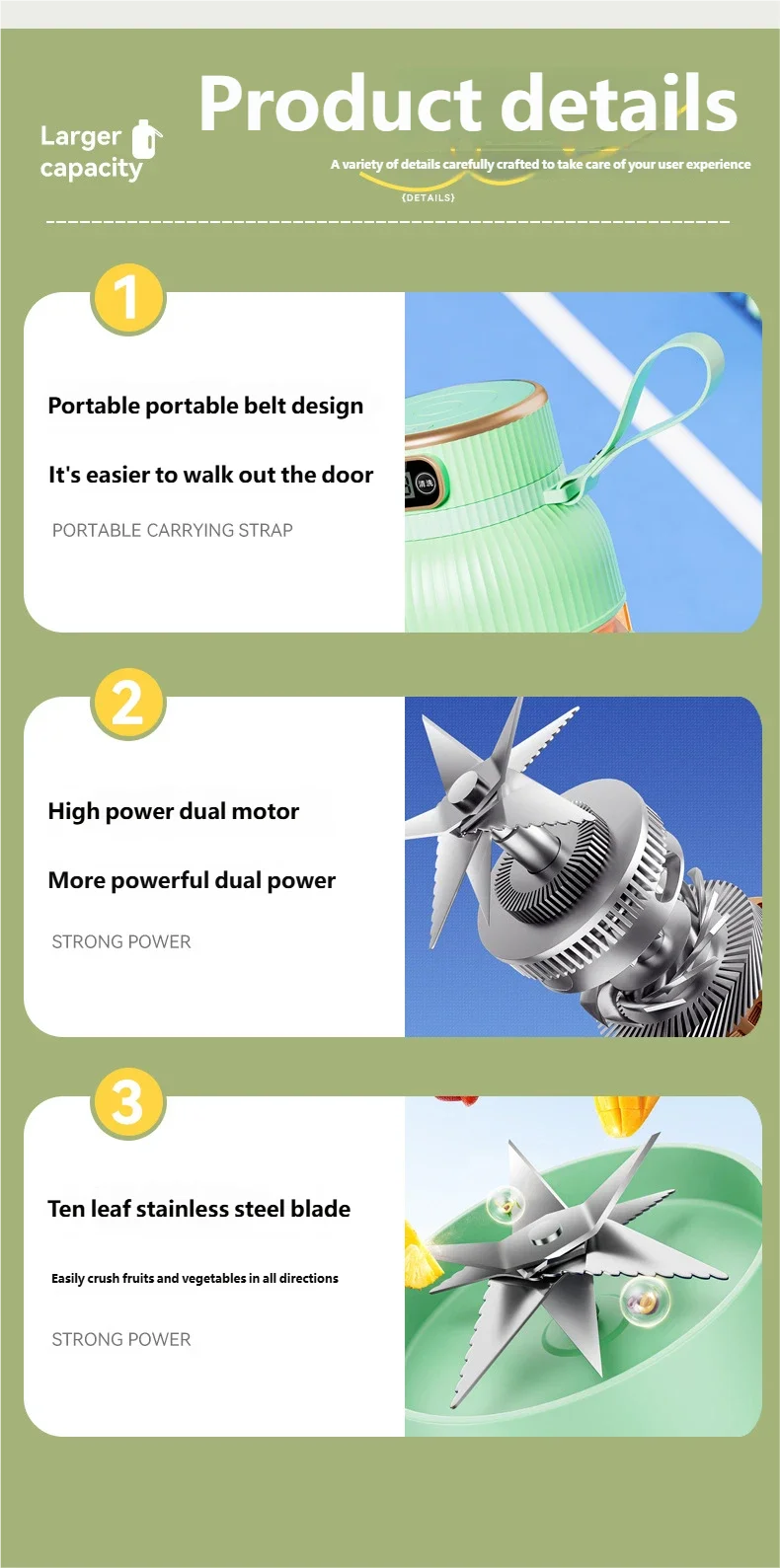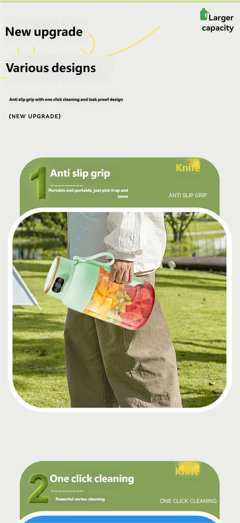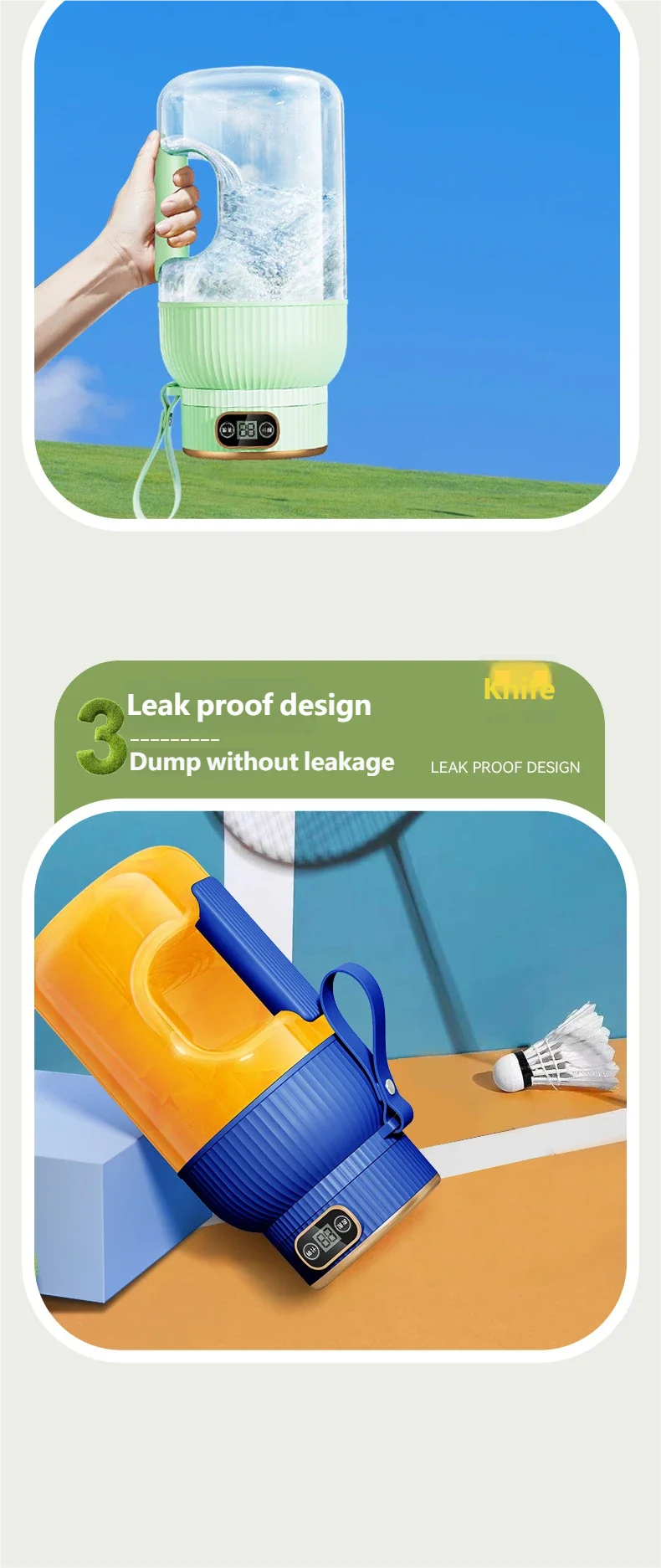 POWERFUL JUICER: Equipped with a 4-blade system and a powerful motor, this juicing bottle efficiently extracts juices from fruits and vegetables.