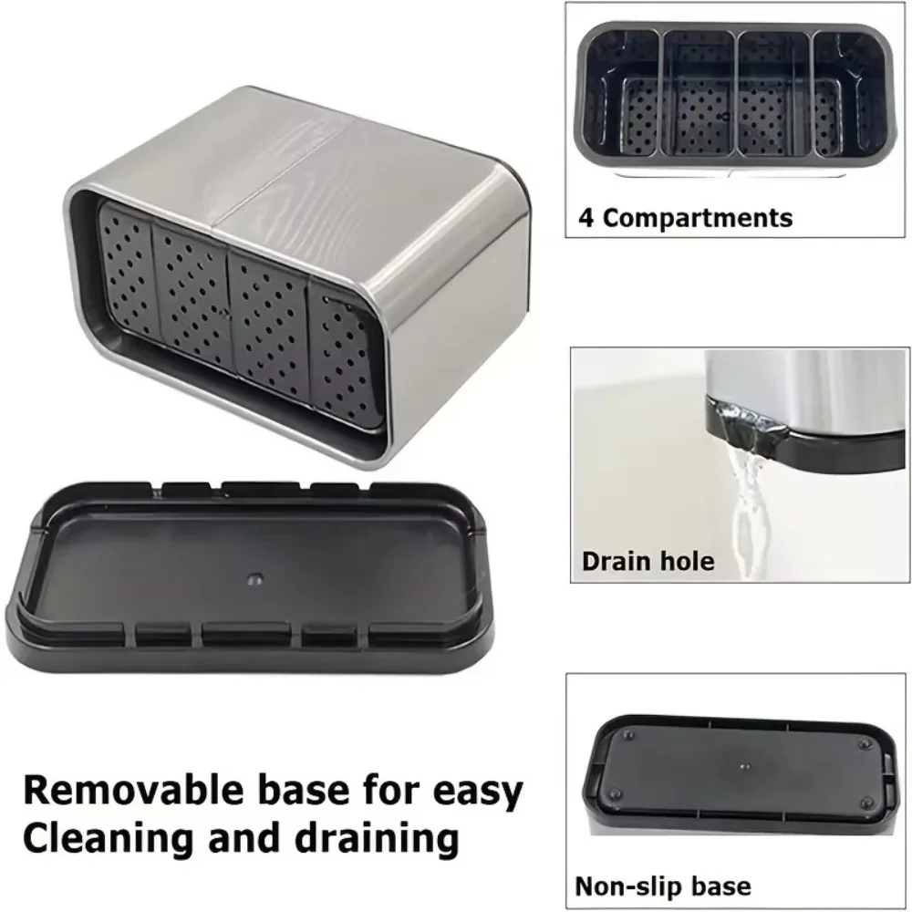 Large Capacity Kitchen Utensil Holder Multifunctional with Removable Divider Kitchen Cutlery Organizer Stainless Steel