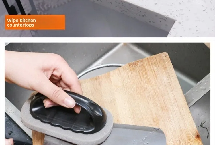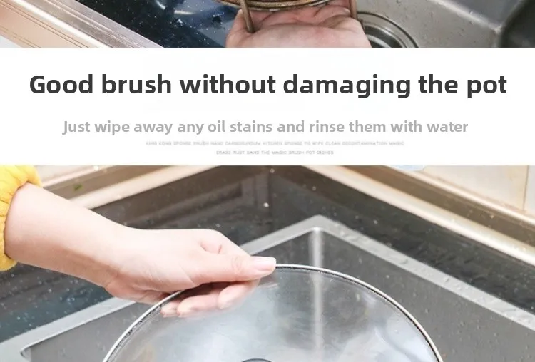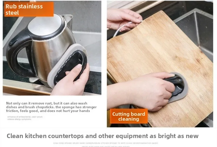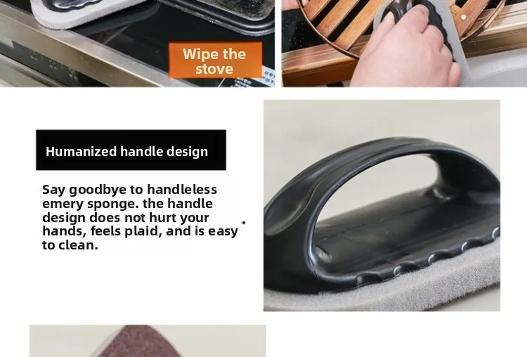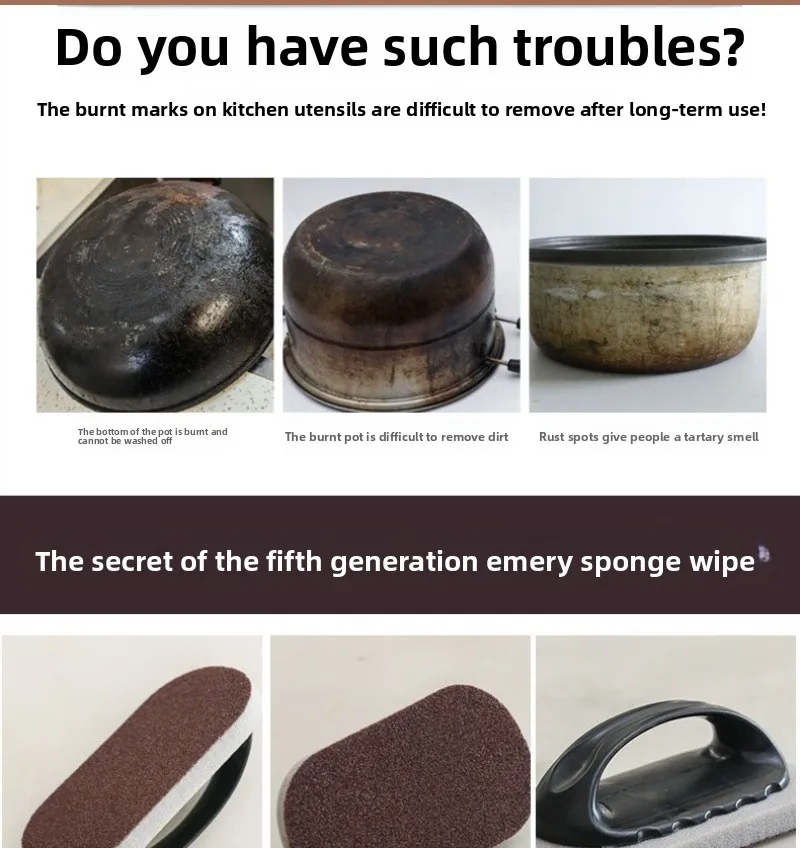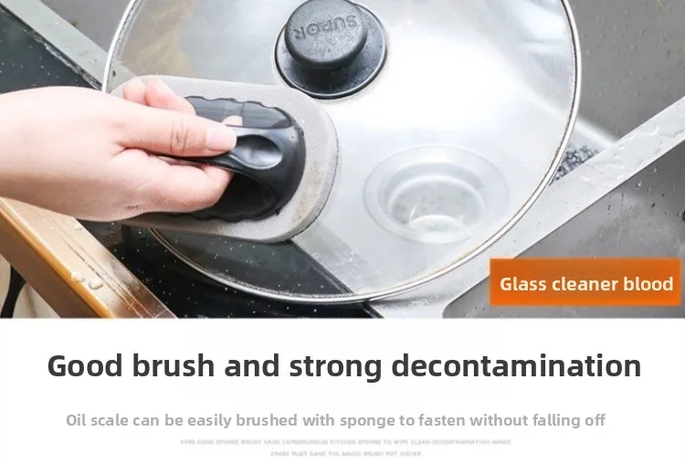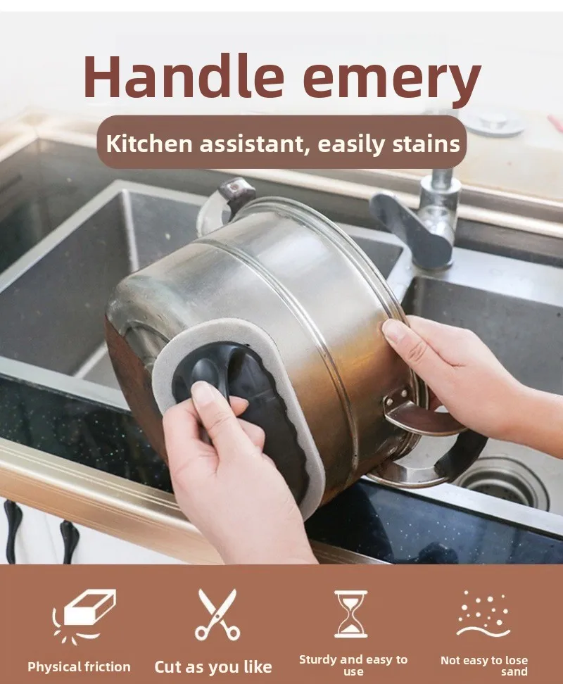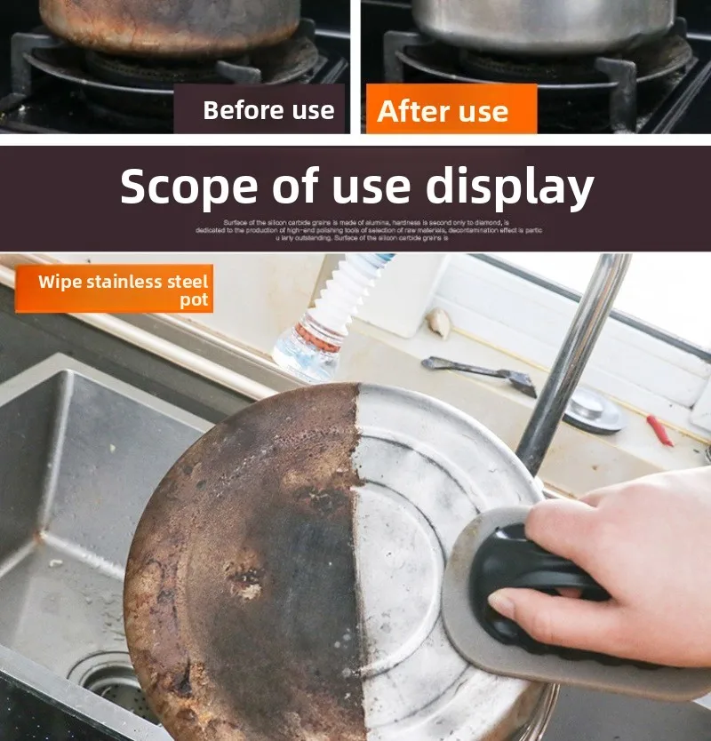 Magic Emery Sponge Brush with Handle Reusable Wipe Eraser Cleaner Kitchen Pot Brush BBQ Strong Decontamination Cleaning Tools