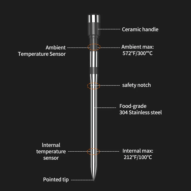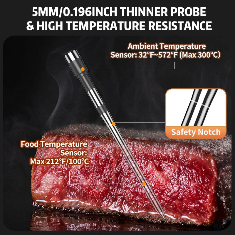 Wireless Bluetooth Meat Thermometer Digital Food Thermometer Dual Probe with LCD Display for Grill/Smoker/Air Fryer/Rotisserie