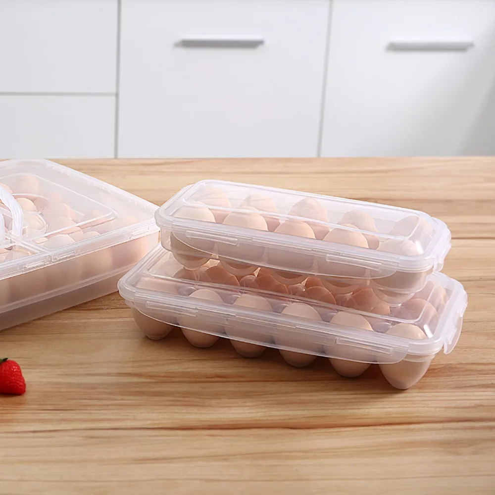 with Lid Egg Storage Box Portable Fresh Preservation Transparent Fridge Egg Organizer 10/18 Grid Egg Drop Rack Kitchen